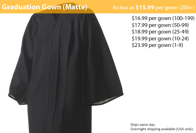 This product is to purchase a gown only (no cap or tassel). If you need a cap and gown pair, go here.