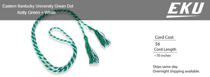 The work done by EKU Green Dot to prevent violence and improve campus safety is recognized at graduation with beautiful kelly green and white honor cords.